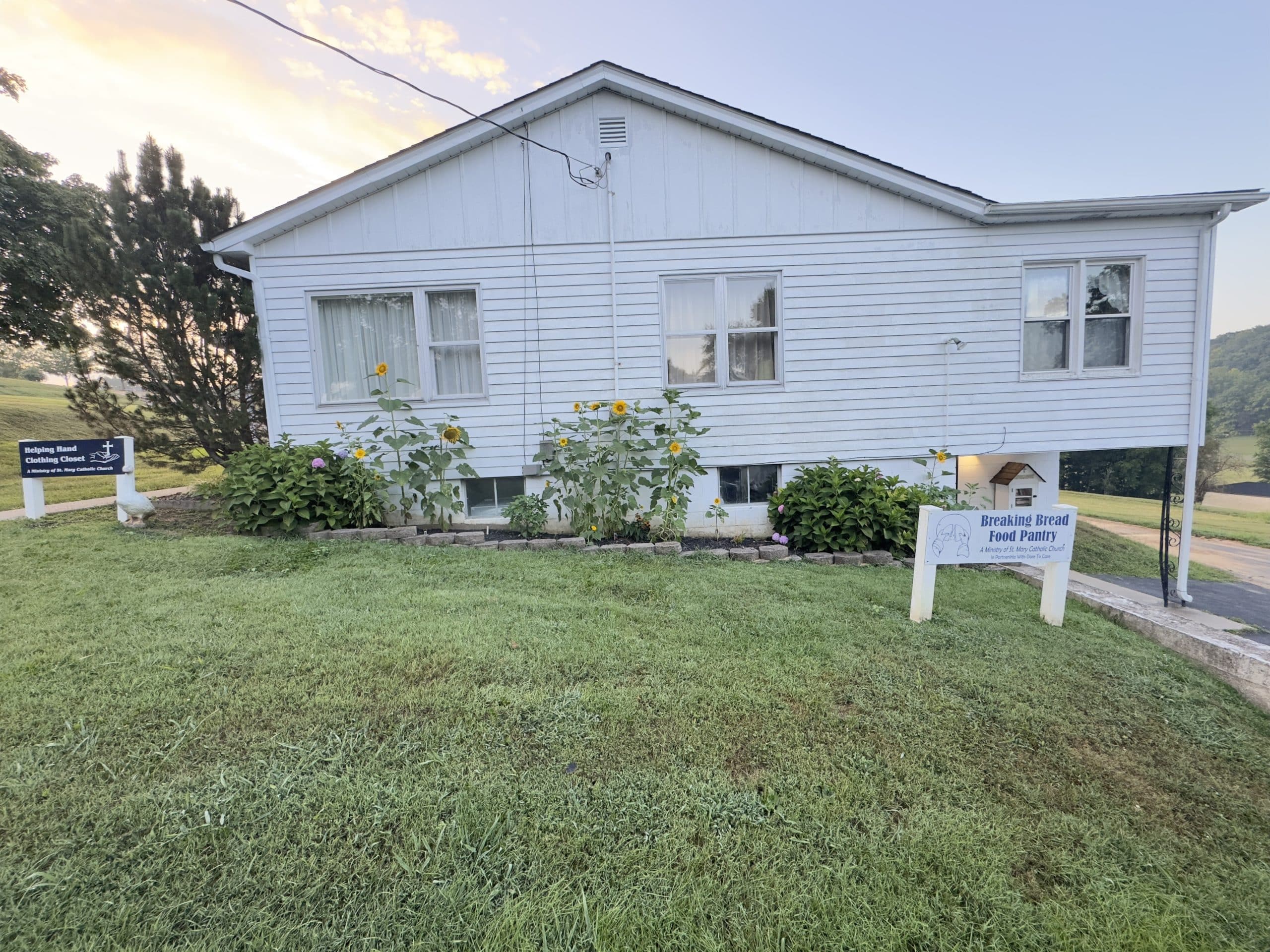 Excluding major holidays, our pantry is staffed on Mondays 11a-12p (food bank deliveries), Tuesdays 4-6p (distributions), and Saturdays 9:30-11:30a (distributions). Non-perishable donations may be left at the pantry door. Perishable or other donations may also be left at the St. Mary’s Parish Office (the yellowish building located due east of the pantry). We greatly appreciate every single donation and, like nearly every food pantry, we seem to always be in need of canned meats, fish, vegetables, pasta sauce, soups, and fruit; cereal; shelf stable milk; pasta; and, toiletry/personal hygiene items. If your heart desires to give, please visit us on distribution days (Tuesdays and Saturdays) to experience the blessings our volunteers receive as we share God’s blessings with those who are in need of nutritional assistance!
